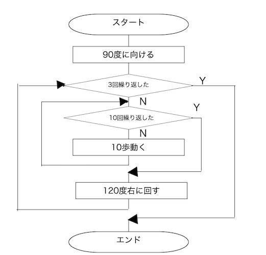 今日もフローチャートを描いてそれをみながらプログラミングしていきます。