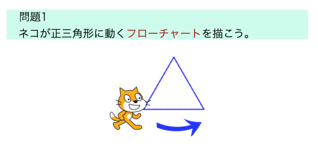 フローチャートが描けたら、それを見てプログラミングをしていきます。問題の通りに動いたら正解です。動かなかったらフローチャートを見なおししてどこが間違えているかを考えて直します。そしてフローチャートどおりにプログラミングも直してもう一度実行します。正解になるまでこれを繰り返します。