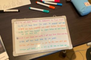英語の授業の内容は、学校の教科書と同じです。教科書に出てくる英単語とセンテンスを、発音の重視、スピーキングし、またテキストを使ってライティングとリスニングを行います。また今まで習った文法を使ってのフリートークも行います。発音はネイティブに近づけていきます。