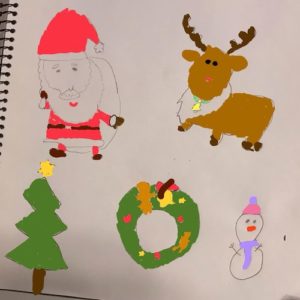 サンタクロース、トナカイ、ツリー、リースそして雪だるま。それぞれ絵を塗ってくれて、可愛さが増しています。見ていて楽しくなります。