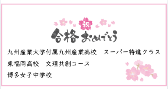 九州産業大学付属九州産業高校:スーパー特進クラス 合格